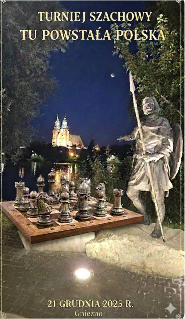 Zapraszamy do Gniezna 21 grudnia 2025 roku na turniej szachowy w formule szachów szybkich. Zapisy już trwają! Szczegóły w komunikacie poniżej.